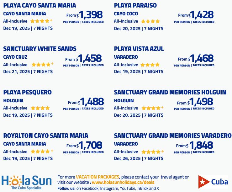 Consumer Deals / Hola Sun reveals Christmas in Cuba savecations!